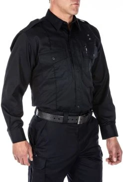 The soft, lightweight 97% cotton/3% spandex fabric provide just the right amount of stretch while remaining durable enough for every day wear. This button up shirt has a single left chest pocket (with snap closure) and pen pockets on the left sleeve, providing additional function while still maintaining a covert appearance. All the buttons are snaps for ease of use and quick access to your waistband if necessary.